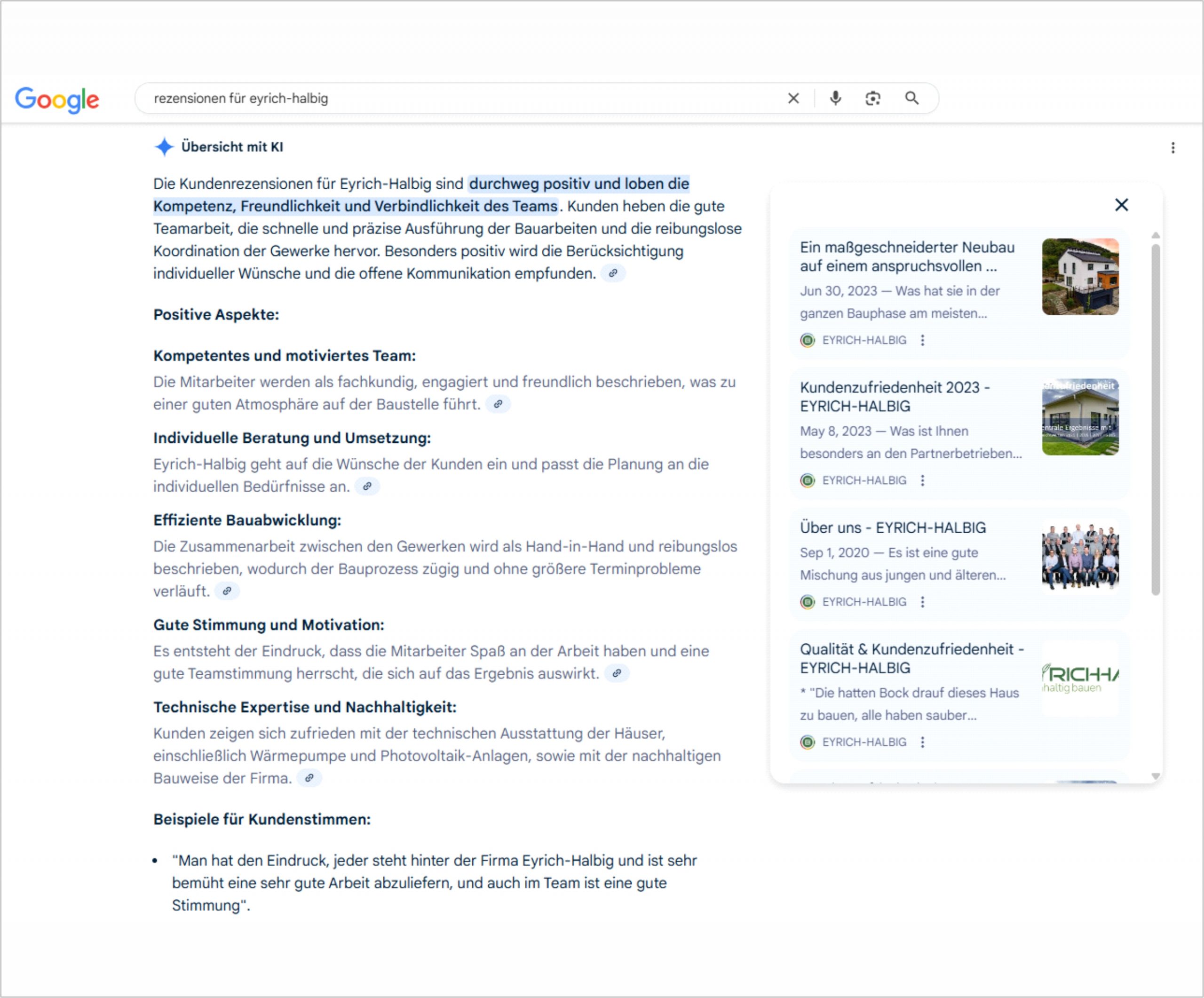Das Ergebnis einer Google-Abfrage am 20. September 2025 – rezensionen für eyrich-halbig.