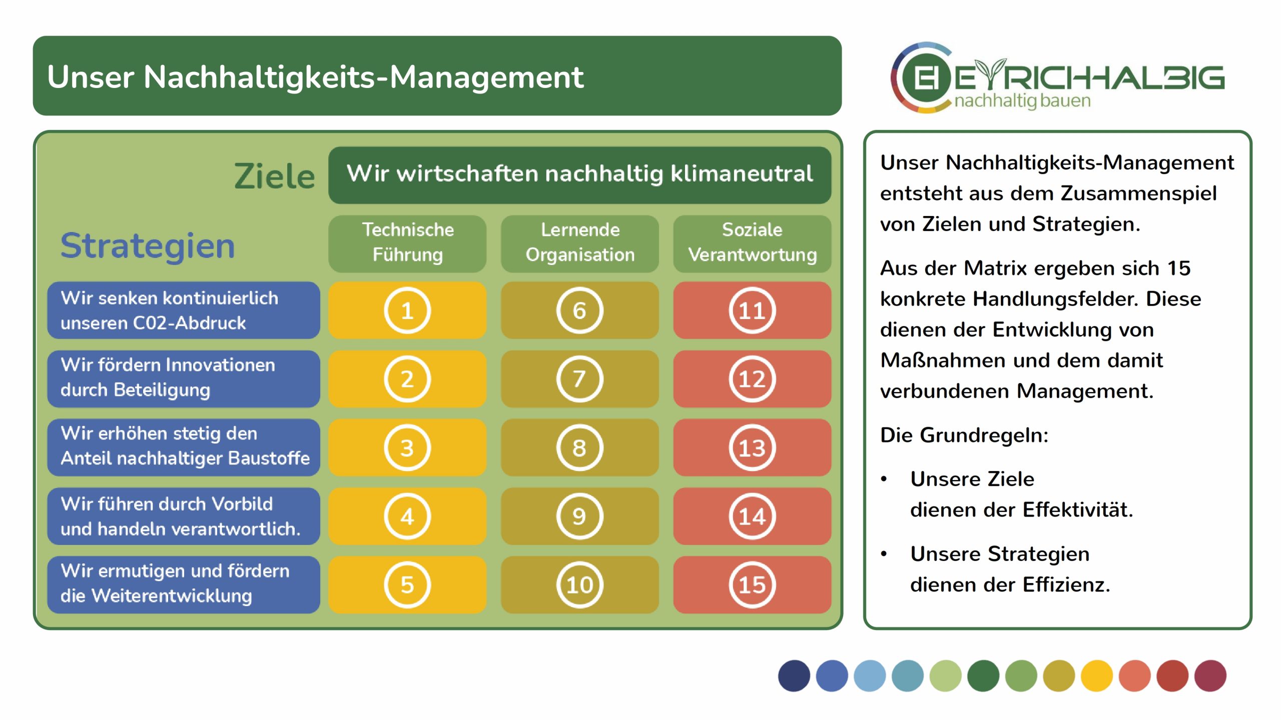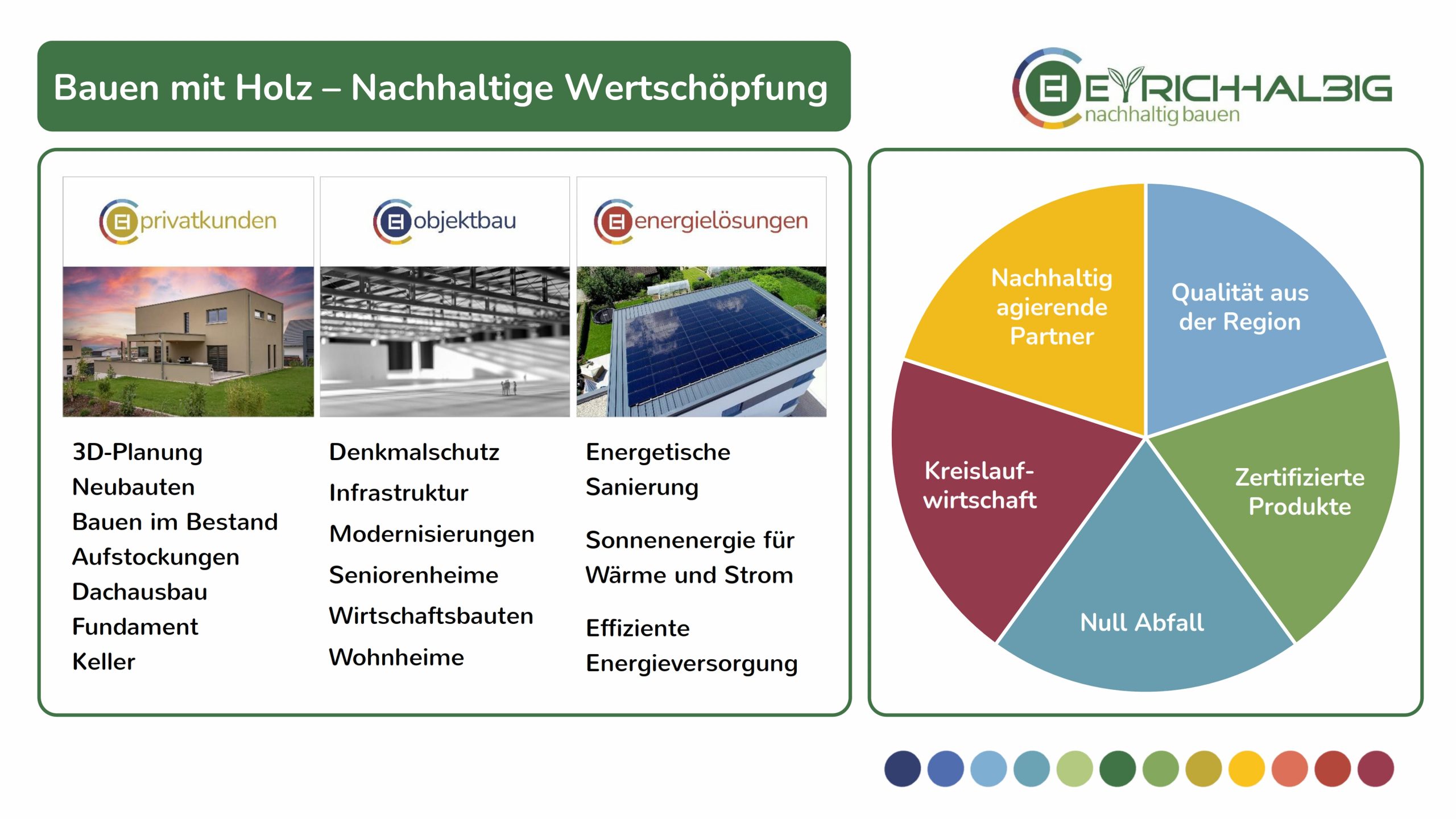 Jeder SIEGER des DNP25 erläuterte in einem Kurzvortrag die zentralen Bausteine der Nachhaltigkeits-Strategie seines Betriebes, so auch EYRICH-HALBIG HOLZBAU. Anbei die zentralen Folien.
