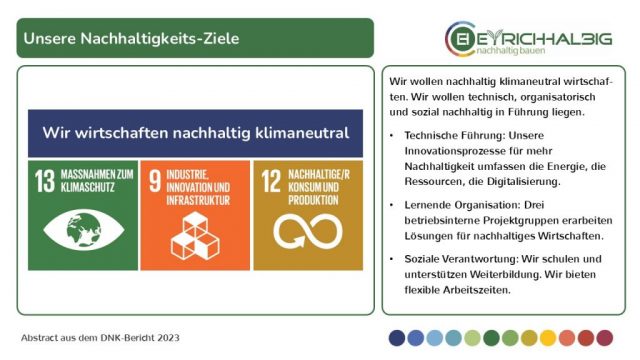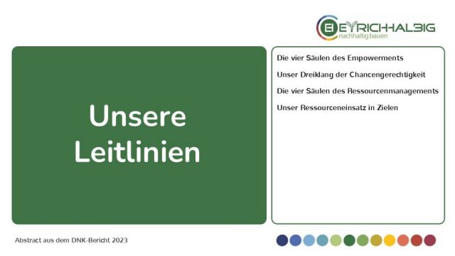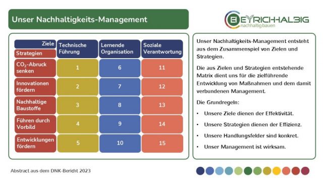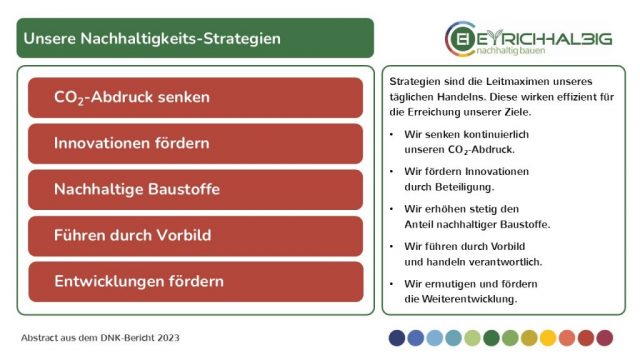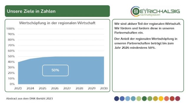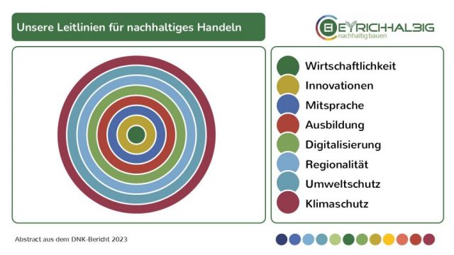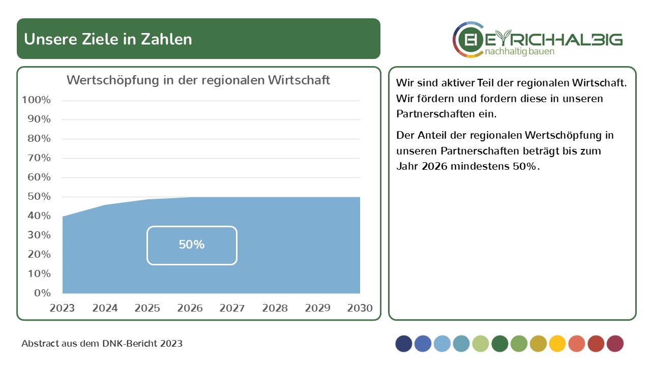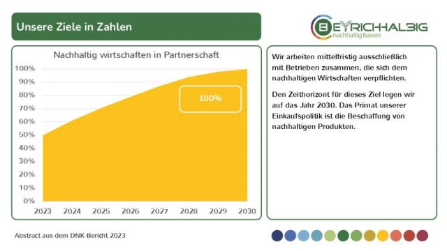 Anteil nachhaltiger Baustoffe. Wir führen durch Vorbild und handeln verantwortlich. Wir ermutigen und fördern die Weiterentwicklung.