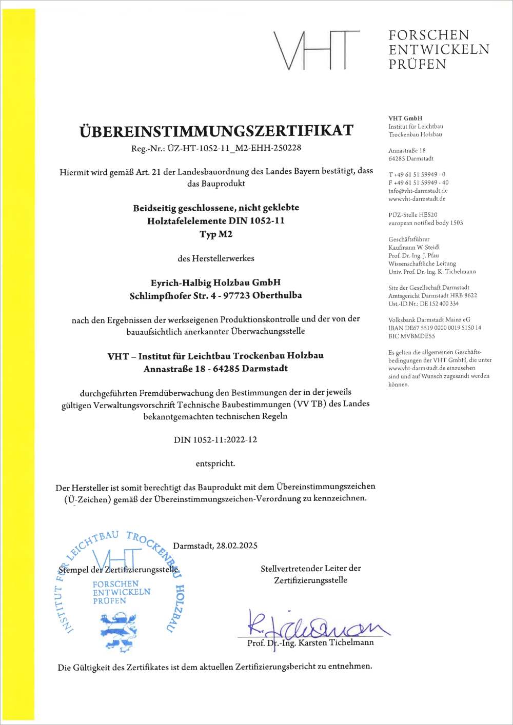 Die Eyrich-Halbig Holzbau GmbH dokumentiert ihren Qualitätsanspruch mit Urkunden und Zertifikaten. Ein verlässlich hoher Qualitätsstandard und eine systematische Verbesserungen der Qualität gelingen nur, wenn man sich und seine Mitarbeiter regelmäßig schult und den Betrieb öffnet für den kritischen Blick von Außen.